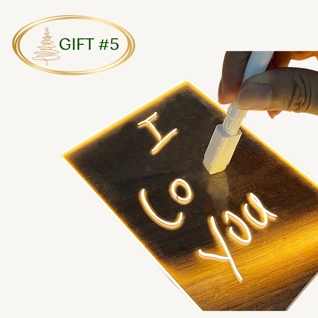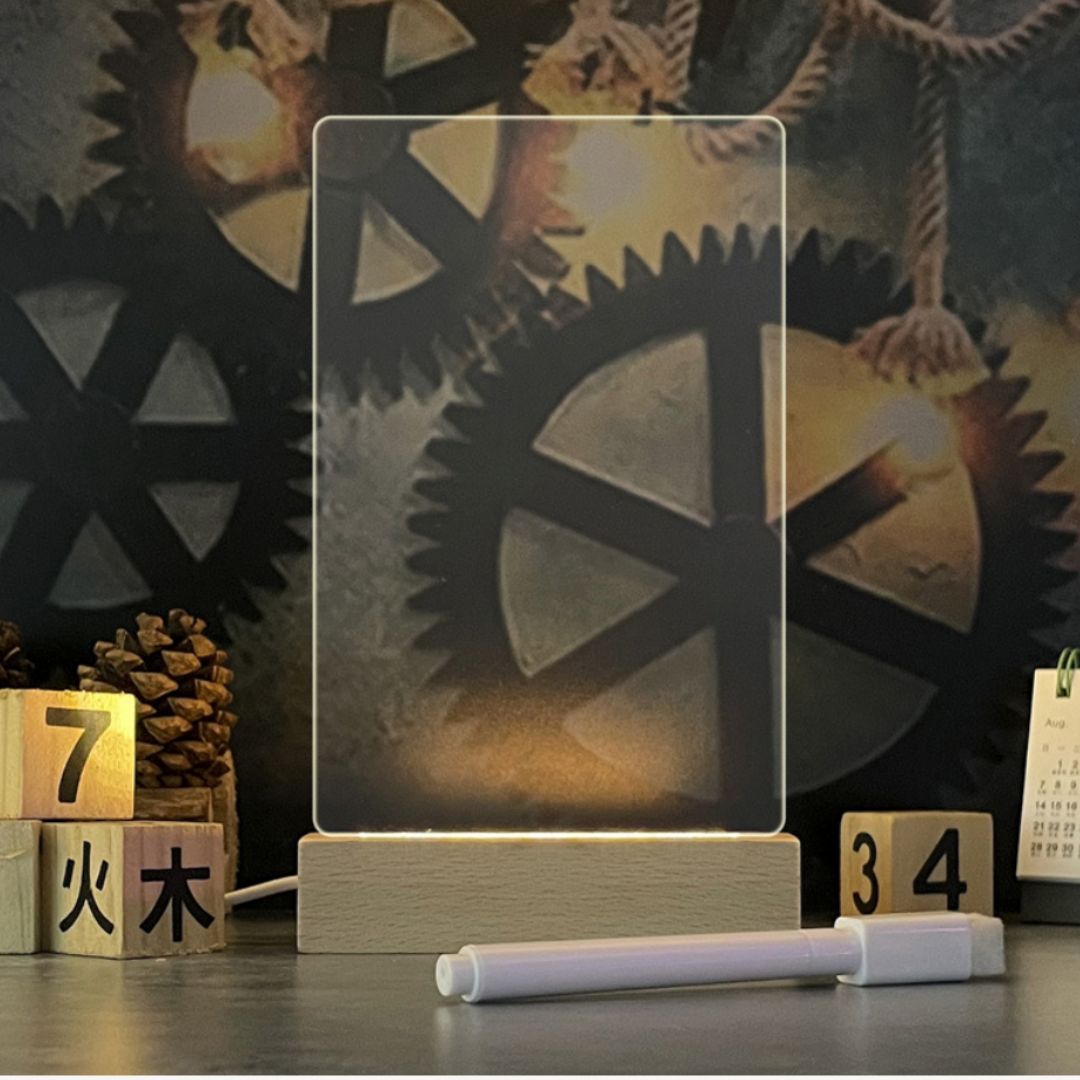 The warm LED light creates a cozy atmosphere, and the included pen lets you write and erase effortlessly.